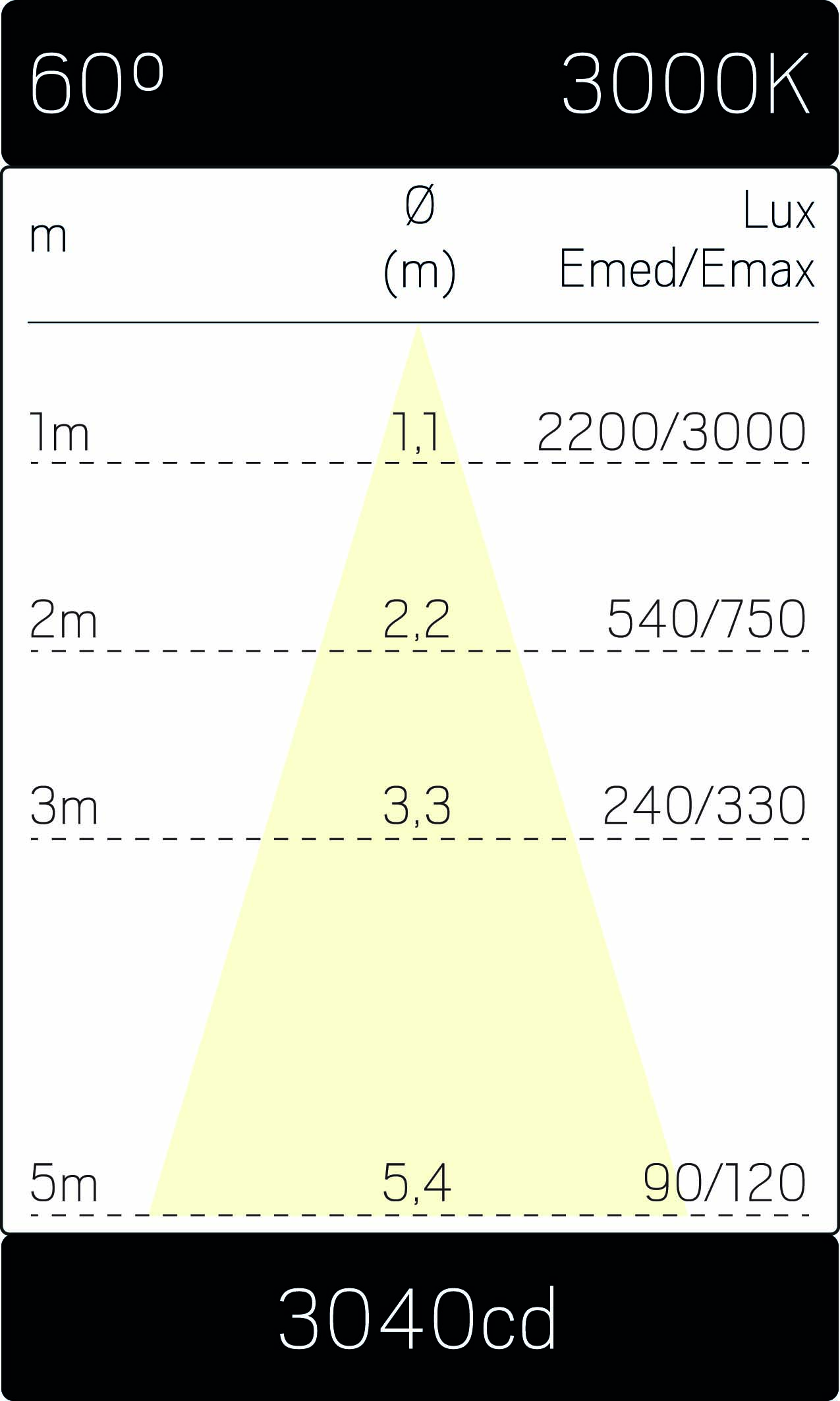 Optic Track M 60° Vit 3000K
