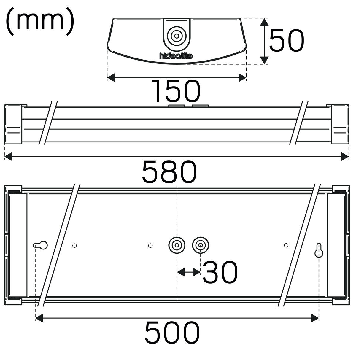 Väggfäste 45° av förzinkad stålplåt för montage av Liteline-armaturer på vägg med ljusbild…