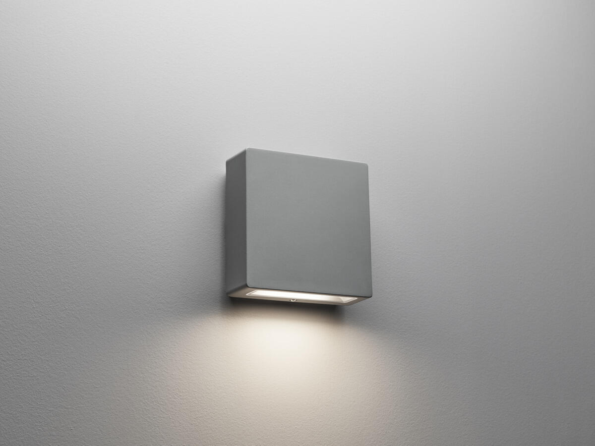 Väggarmatur i rektangulärt formspråk, integrerat fasdimringsbart drivdon och ljusutsläpp nedåt. Lys upp fasaden, skapa ett välkomnande intryck vid entrén, dimra enkelt ljuset till önskad nivå. IP65-utförande med armaturhus för tufft utomhusklimat. Lättinstallerad tack vare separat bakstycke med dubbla genomföringar och vidarekopplingsbar snabbplint för direkt anslutning till 230V. Distanser för utanpåliggande kabeldragning medföljer. Dimbar med de vanligaste dimrarna på marknaden.