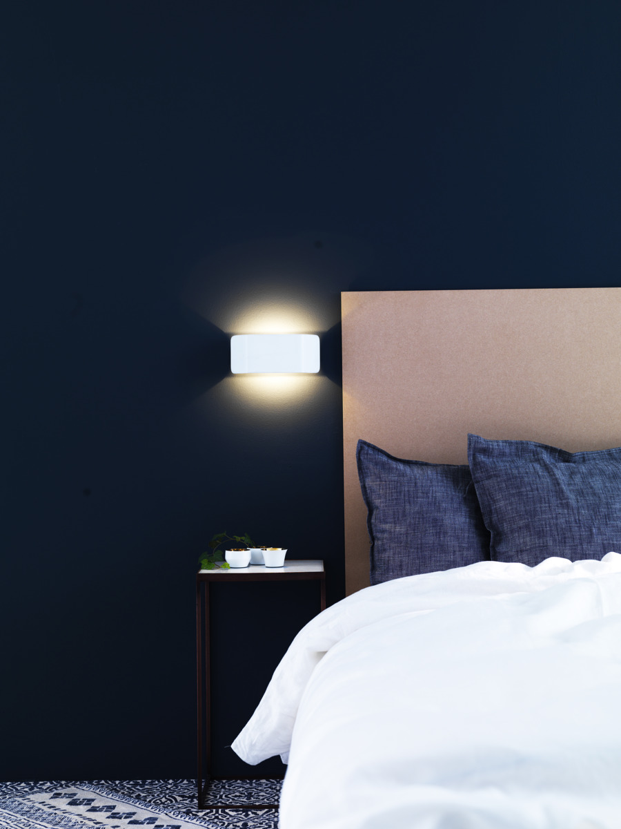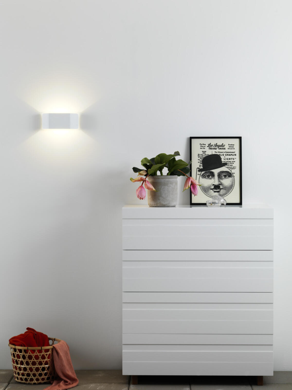 Modern LED-armatur med retroutseende och behagligt indirekt upp- och nerljus som ger en dekorativ ljusbild på väggen. Utmärkt som effektbelysning i både offentlig och privat miljö. Utförande i träfaner eller vitlackerad aluminium. Levereras komplett med inbyggt dimbart drivdon. Dimbar med de vanligaste dimrarna på marknaden.