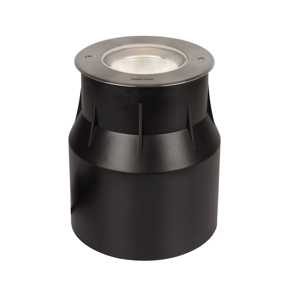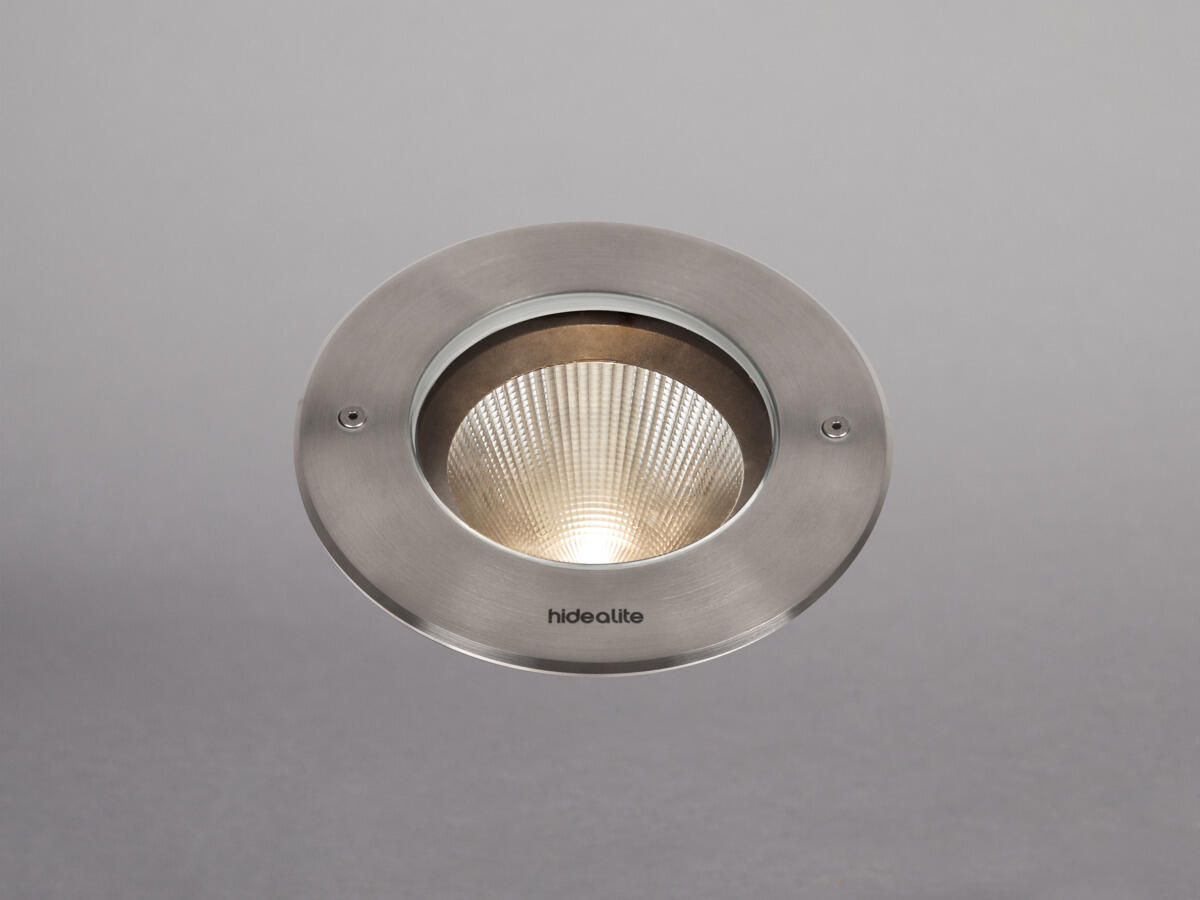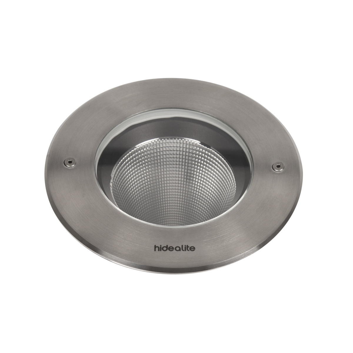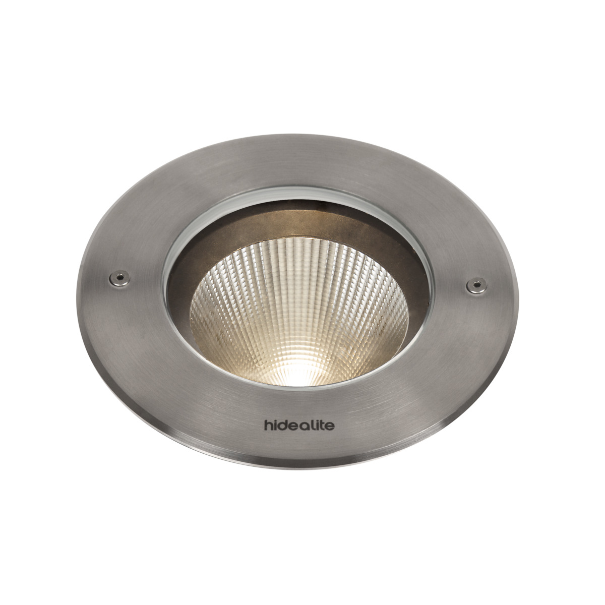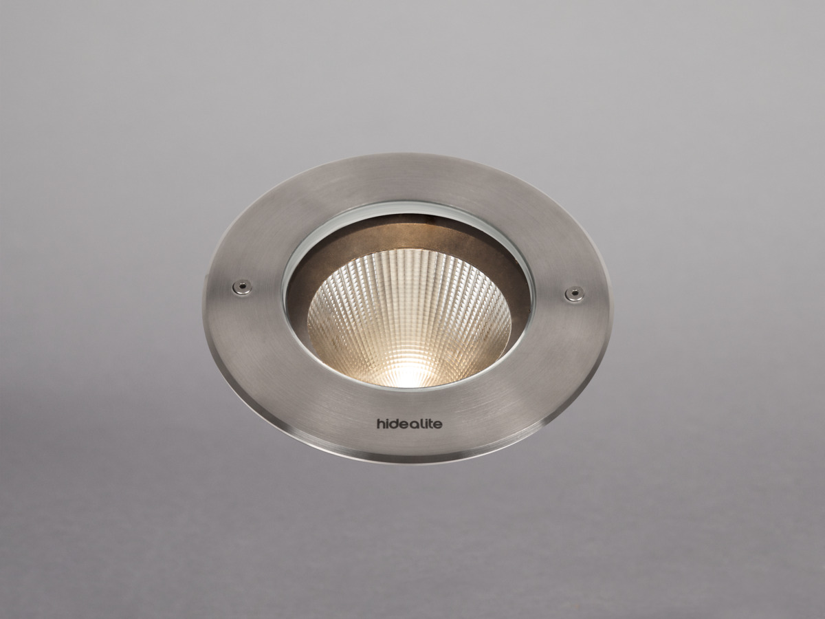 Ställbar markstrålkastare i två storlekar med hög finish för trädgård och fastighet. Armaturen är ställbar 12,5° åt två håll för att kunna rikta ljuset mot t.ex. en fasad och samtidigt minska bländningen. Multichip och reflektoroptik ger strålande ljus med halogenkaraktär. Armaturhus av gjuten aluminium, ytterring av rostfritt stål (316) och härdat skyddsglas. Monteras i mark eller gjuts in. Levereras komplett med inbyggt drivdon, 2m gummikabel samt montagebox. Ansluts till 230V.