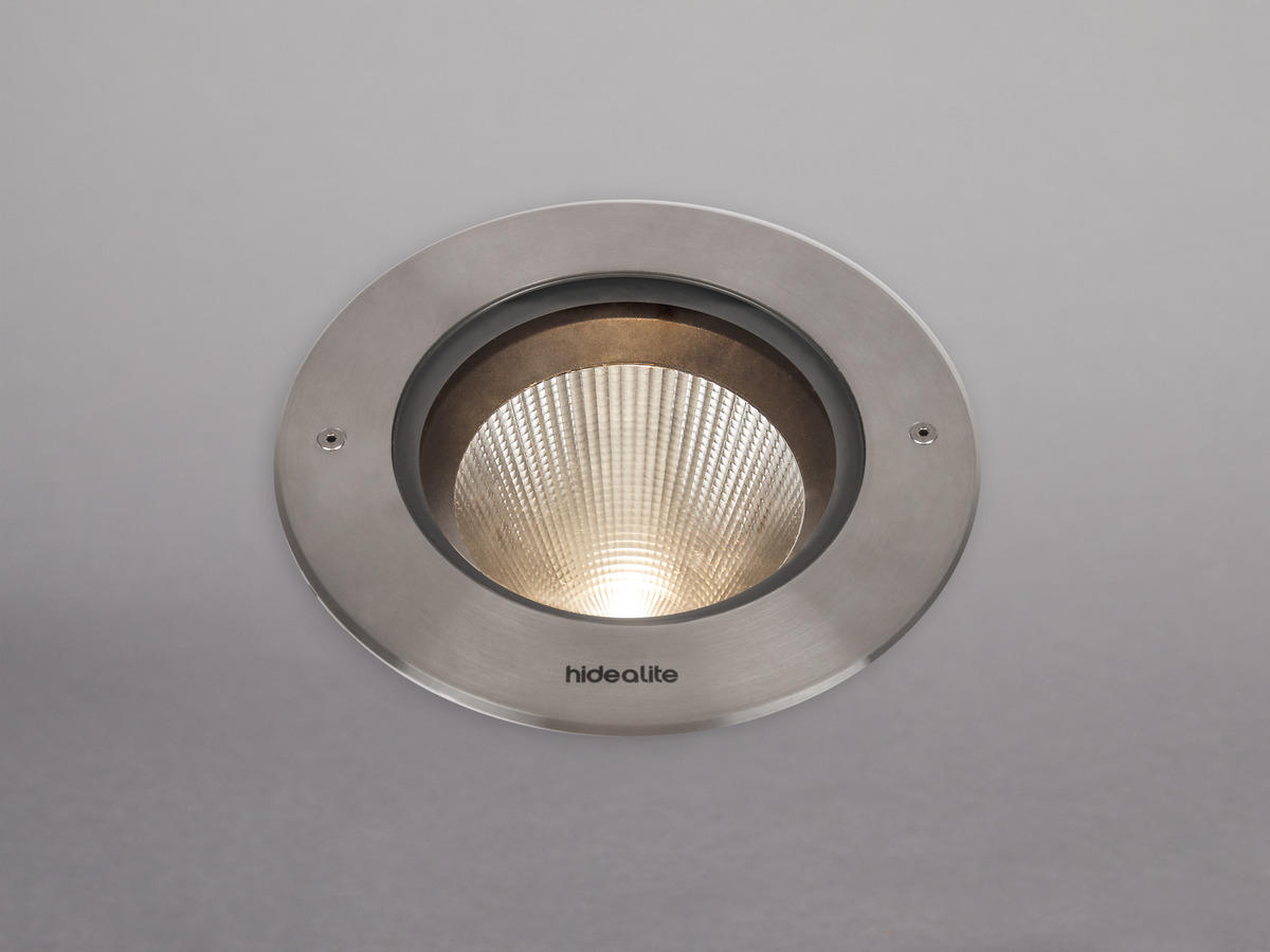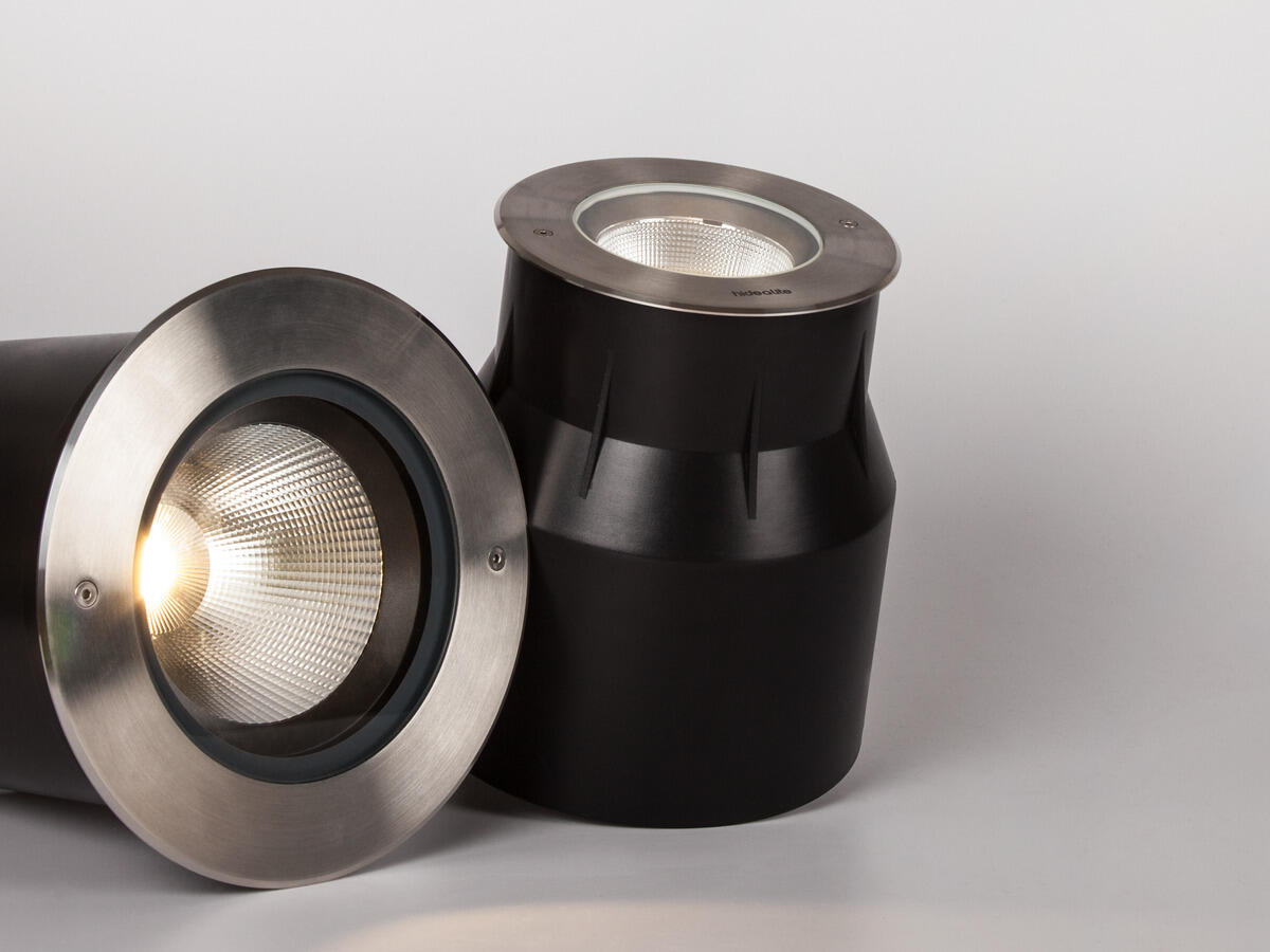 Ställbar markstrålkastare i två storlekar med hög finish för trädgård och fastighet. Armaturen är ställbar 12,5° åt två håll för att kunna rikta ljuset mot t.ex. en fasad och samtidigt minska bländningen. Multichip och reflektoroptik ger strålande ljus med halogenkaraktär. Armaturhus av gjuten aluminium, ytterring av rostfritt stål (316) och härdat skyddsglas. Monteras i mark eller gjuts in. Levereras komplett med inbyggt drivdon, 2m gummikabel samt montagebox. Ansluts till 230V.