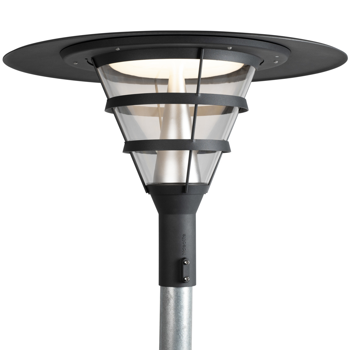 Stilig stolparmatur i familjen Pave. Perfekt utanför den större fastigheten eller parkeringen som behöver mycket ljus. Välj utseende och öka avbländningen på din armatur i kombination med Top, Deco II och Deco IV. Stolpfäste anpassat för stolpar 60mm. Utbytbart LED och drivdon. Valbar färgtemperatur och ställbart ljusflöde via DIP-switch. 10kV finskydd som standard. Adapter finns som tillbehör för montage på 48mm stolpe. Levereras med 5m förmonterad gummikabel för enkel anslutning.