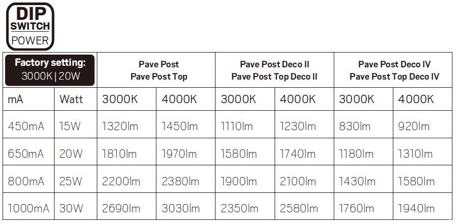 • Ställbart ljusflöde och valbar färgtemperatur via DIP-Switch