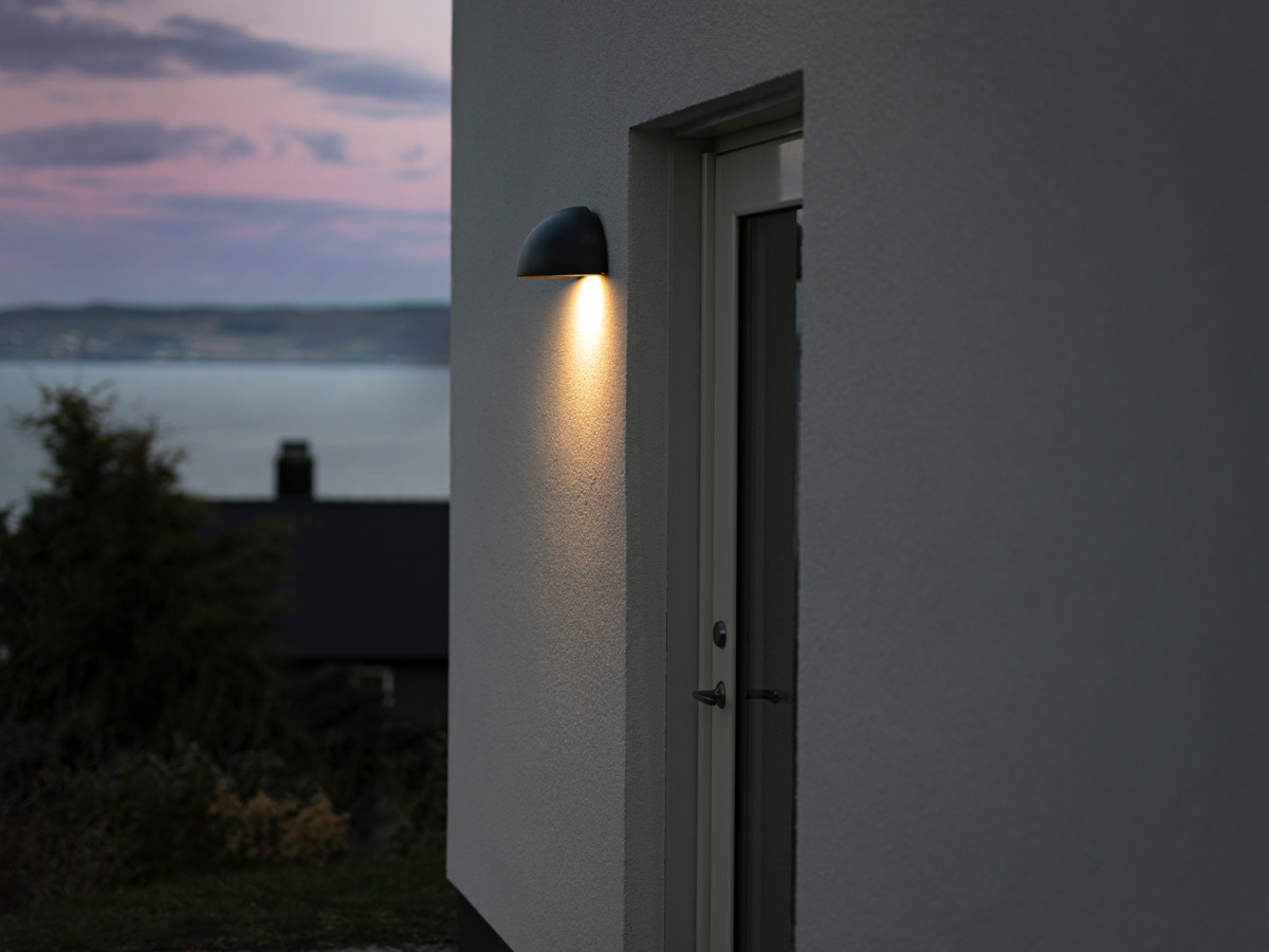 Tidlös fasadfavorit med integrerat fasdimringsbart drivdon och ljusutsläpp nedåt. Lys upp fasaden, skapa ett välkomnande intryck och dimra enkelt ljuset till önskad nivå. Slagtålig (IK10) IP65-armatur med tålig pulverlack för att klara vårt nordiska klimat. Lättinstallerad tack vare separat bakstycke med dubbla genomföringar och vidarekopplingsbar snabbplint. Distanser för utanpåliggande kabeldragning ingår. Dimbar med de vanligaste dimrarna på marknaden.