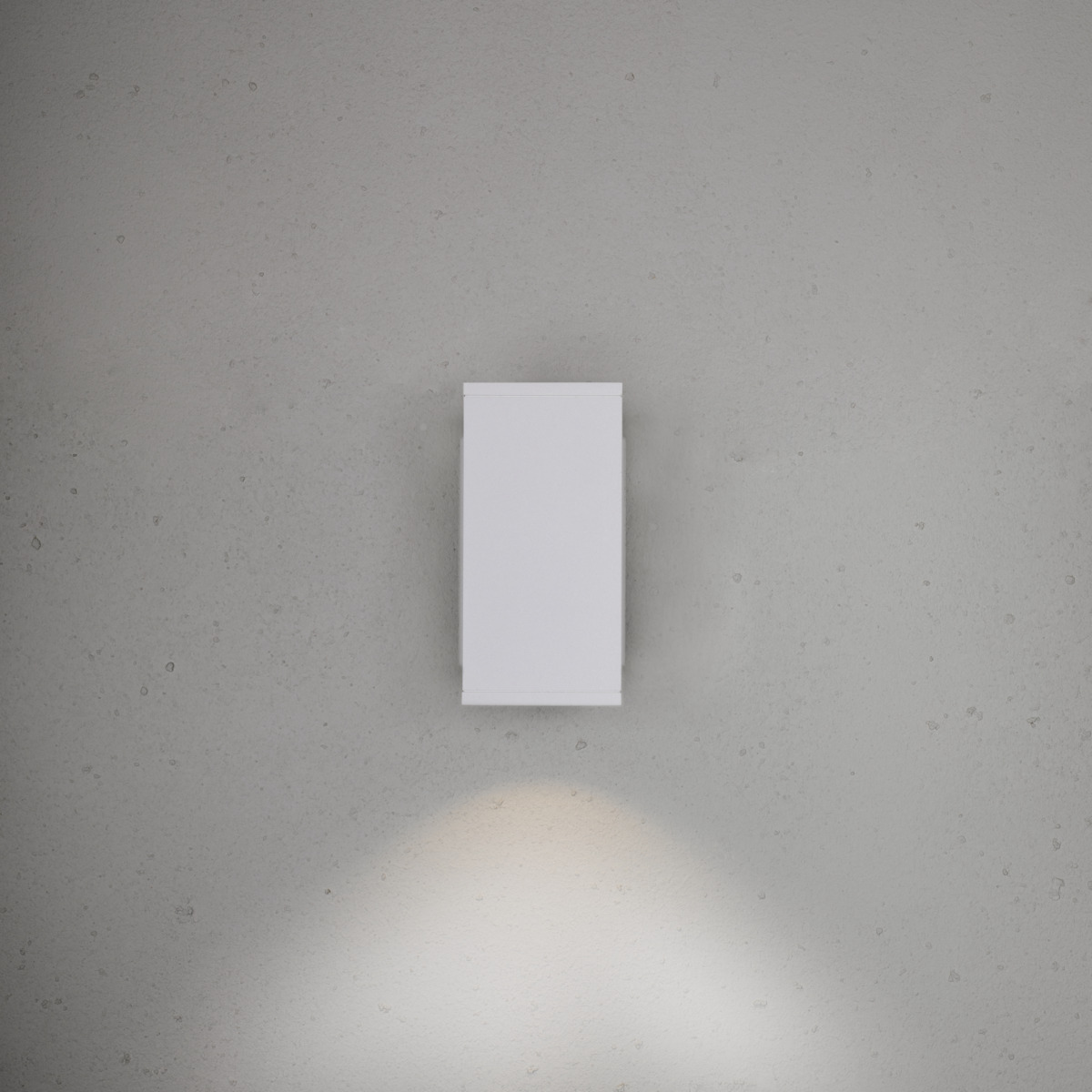 Väggarmatur i rektangulärt formspråk, integrerat fasdimringsbart drivdon och ljusutsläpp både uppåt och nedåt. Lys upp fasaden, skapa ett välkomnande intryck vid entrén, dimra enkelt ljuset till önskad nivå. IP65-utförande med armaturhus för tufft utomhusklimat. Lättinstallerad tack vare separat bakstycke med dubbla genomföringar och vidarekopplingsbar snabbplint för direkt anslutning till 230V. Distanser för utanpåliggande kabeldragning medföljer. Dimbar med de vanligaste dimrarna på marknaden.
