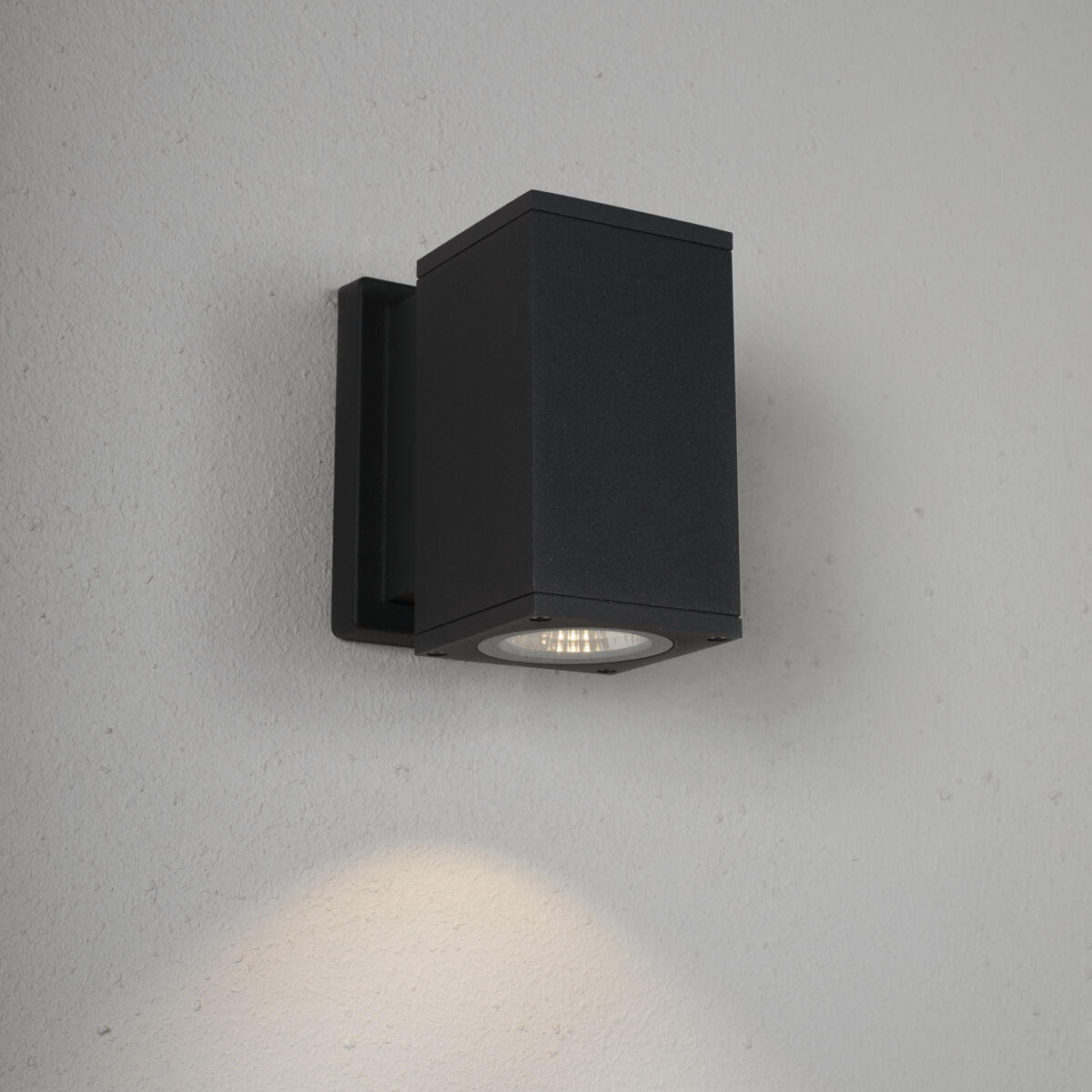 Väggarmatur i tidlös design med ljusutsläpp nedåt. LED COB med reflektoroptik och genomtänkt design ger fin ljusbild och god ljuskomfort. Separat bakstycke med dubbla genomföringar och vidarekopplingsbar snabbplint för enkel installation. IP55-utförande med anodiserat och pulverlackerat armaturhus för tufft utomhusklimat. Levereras med inbyggt drivdon och distanser för utanpåliggande kabeldragning.