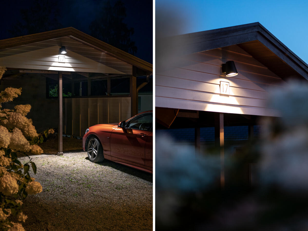 Fasadarmatur i traditionell design som ger ett behagligt ljus med en jämn och bred ljusbild på väggen. Armaturen finns med eller utan två integrerade eluttag på undersidan perfekt för trädgårdsredskap, el-grill eller vinterns dekorationsbelysning. Möjlighet finns att styra uttag och belysning var för sig. Mycket enkel installation tack vare separat stomme, få skruvar och gott om utrymme. Inbyggt drivdon med ställbar ljusnivå via DIP-Switch Power. Möjlighet till dimring finns via externt drivdon, se bruksanvisning.