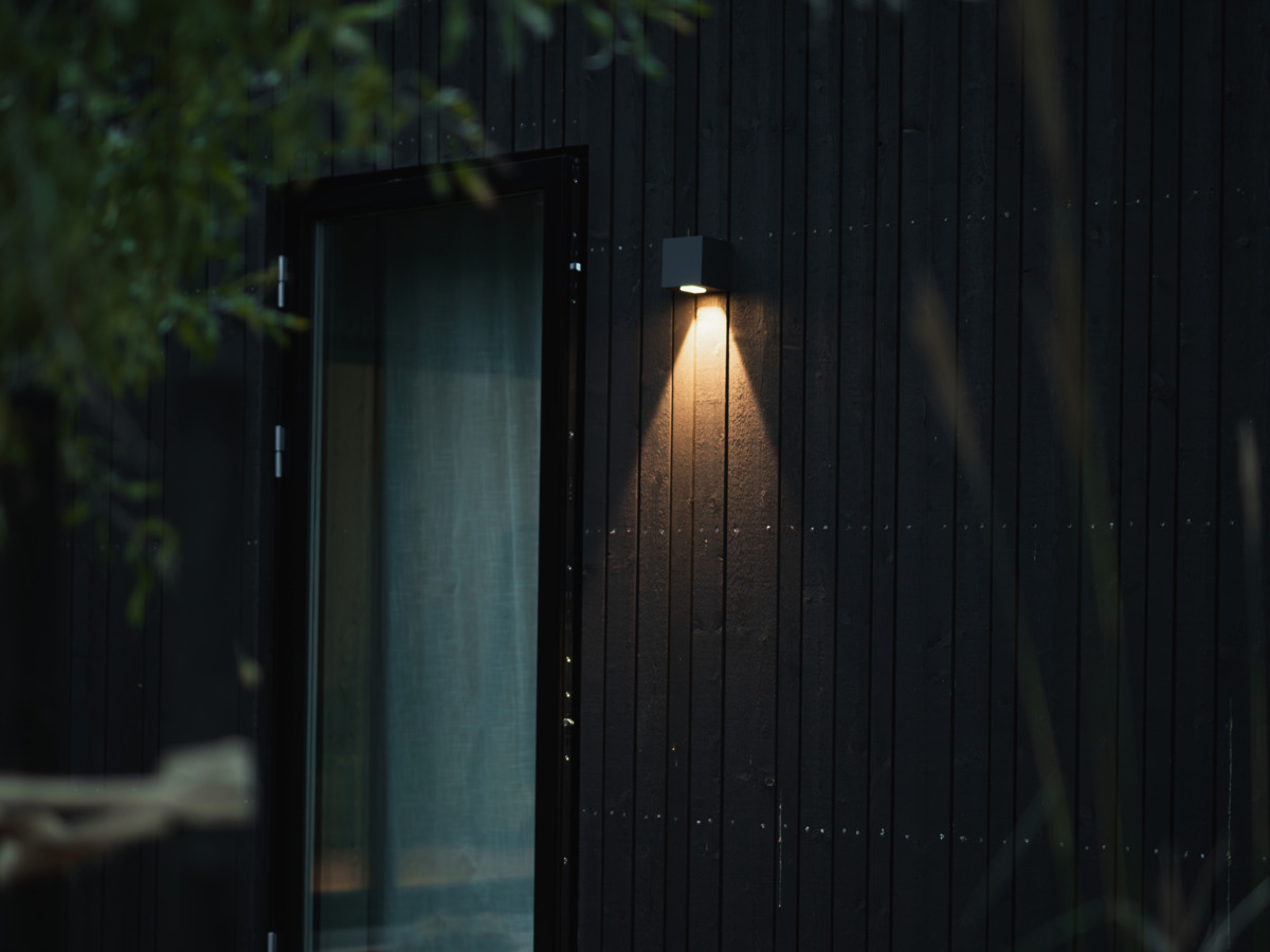 Väggarmatur i tidlös design med ljusutsläpp nedåt. LED COB med reflektoroptik och genomtänkt design ger fin ljusbild och god ljuskomfort. Separat bakstycke med dubbla genomföringar och vidarekopplingsbar snabbplint för enkel installation. IP55-utförande med anodiserat och pulverlackerat armaturhus för tufft utomhusklimat. Levereras med inbyggt drivdon och distanser för utanpåliggande kabeldragning.