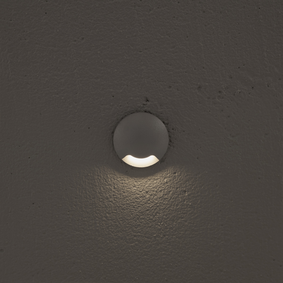 Diskret, infälld och fasdimringsbar 230V-armatur. Väggarmatur anpassad för apparatdosa som skapar distinkta ljusbilder på golvet. Belys till exempel gångstråk inomhus, eller trappan längs med en vägg. Byt enkelt utseende på armaturen med svart frontlock (säljs separat). Integrerad snabbplint på baksidan för vidarekoppling ger enkel installation. Komplett med inbyggt fasdimringsbart drivdon.