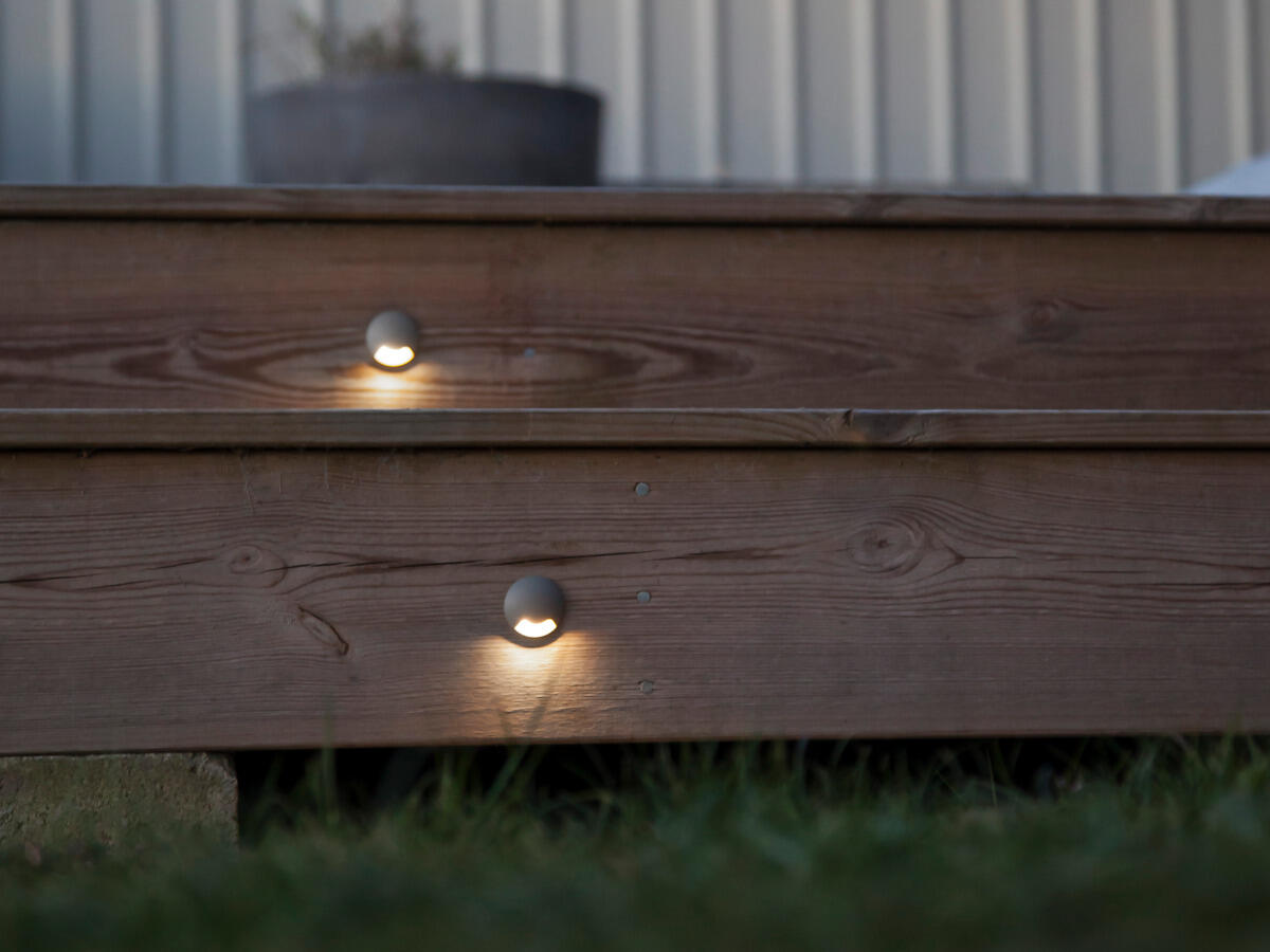 Dekorativ trappstegsbelysning med låg energiförbrukning. Skapa en effektfull ljussättning av trappor vid till exempel altaner eller trädäck. Levereras med 2st 0,5m gummikablar med skruvkopplingar. Som tillbehör finns även transformator och skarvkablar på 1 eller 5 meter. Kan kombineras med Spotlight Garden och Decklight Garden tack vare det gemensamma kopplingssystemet.