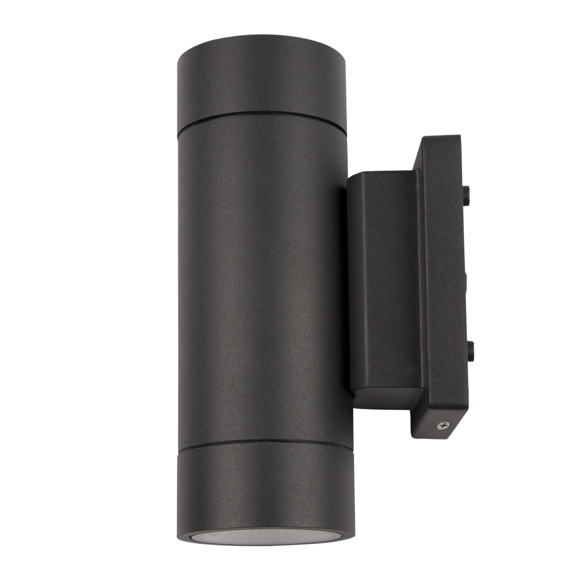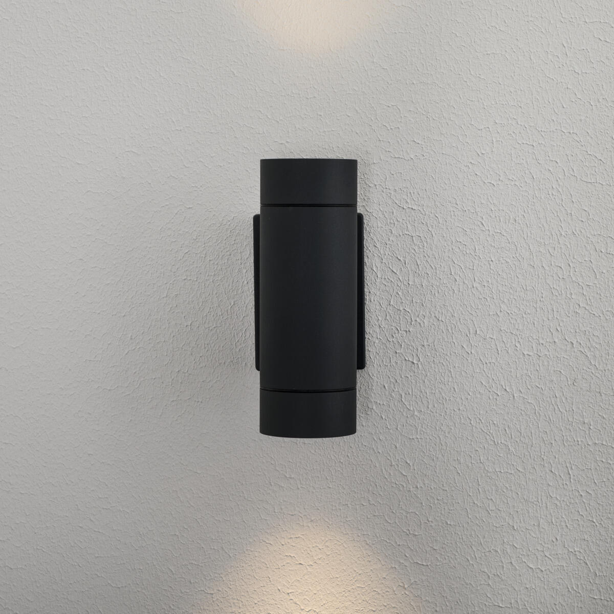 En nätt fasadarmatur med GU10-sockel i stilren konformad design med en asymmetrisk ljusbild som lyser upp både vägg och mark. Enkelt montage tack vare separat bakstycke med dubbla genomföringar och vidarekopplingsbar snabbplint. Distanser för utanpåliggande kabeldragning medföljer. IP65-klassad med tålig pulverlack för tuffa miljöer. Välj själv ljuskälla för önskad färgtemperatur och ljusstyrka.