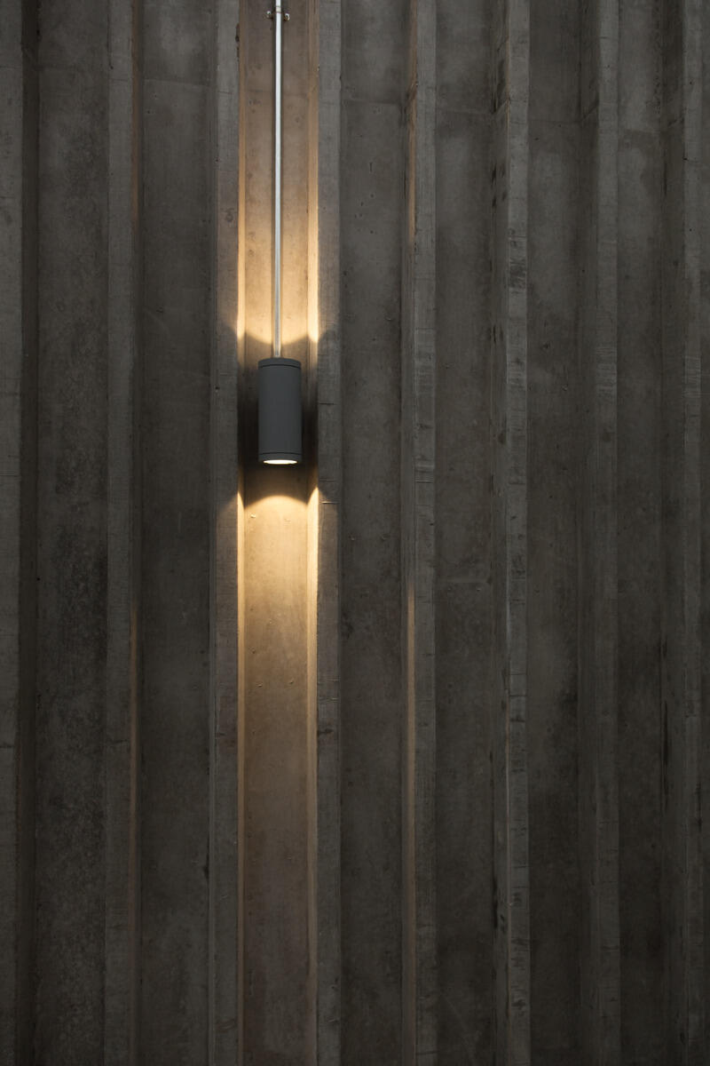 Väggarmatur i tidlös design med ljusutsläpp nedåt. LED COB med reflektoroptik och genomtänkt design ger fin ljusbild och god ljuskomfort. Separat bakstycke med dubbla genomföringar och vidarekopplingsbar snabbplint för enkel installation. IP55-utförande med anodiserat och pulverlackerat armaturhus för tufft utomhusklimat. Levereras med inbyggt drivdon och distanser för utanpåliggande kabeldragning.